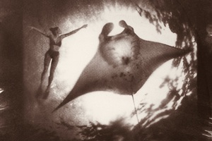 'Zonder woorden' is een werkje dat maakte met zeewater uit de waddenzee en inkt.
