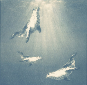 'Wolken' gemaakt met zeewater uit de Waddenzee en inkt.